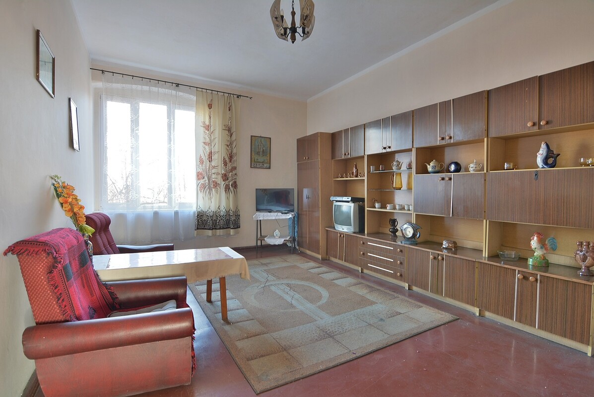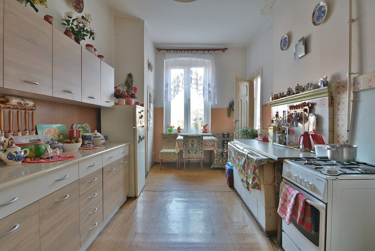 Mieszkanie wymaga wykonania centralnego ogrzewania z wykorzystaniem doprowadzonej instalacji gazowej, lub korzystania z obecnego ogrzewania na piec kaflowy. Ciekawym rozwiązaniem może być aranżacja dużej kuchni na oddzielny pokój, a z sąsiadującego z nią pokoju wykonanie aneksu kuchennego. Takie rozwiązanie zastosowano w mieszkaniu piętro niżej. Ciepła woda na bojler elektryczny w łazience. Czynsz do zarządcy nieruchomości wynosi tylko 344 zł na 1 osobę. Kilkuletnie okna PCV z ekspozycją południe-północ. Do mieszkania przynależy piwnica o powierzchni 10,29 m2. Atrakcyjna oferta dla rodziny lub inwestora, poszukującego nowej inwestycji. Cena do negocjacji, należy przy niej uwzględnić koszty notarialne i prowizję dla biura nieruchomości. Nasz doradca kredytowy pomoże w przypadku zakupu tej nieruchomości na kredyt.