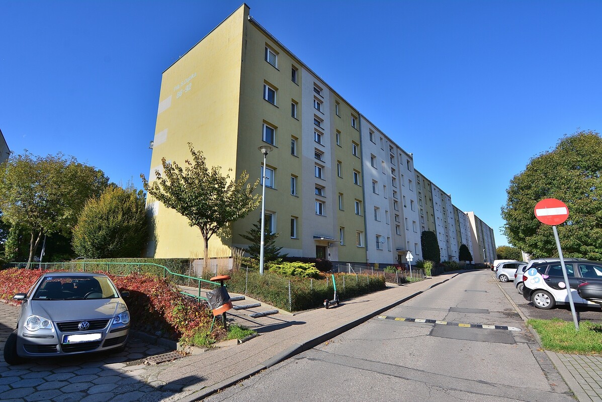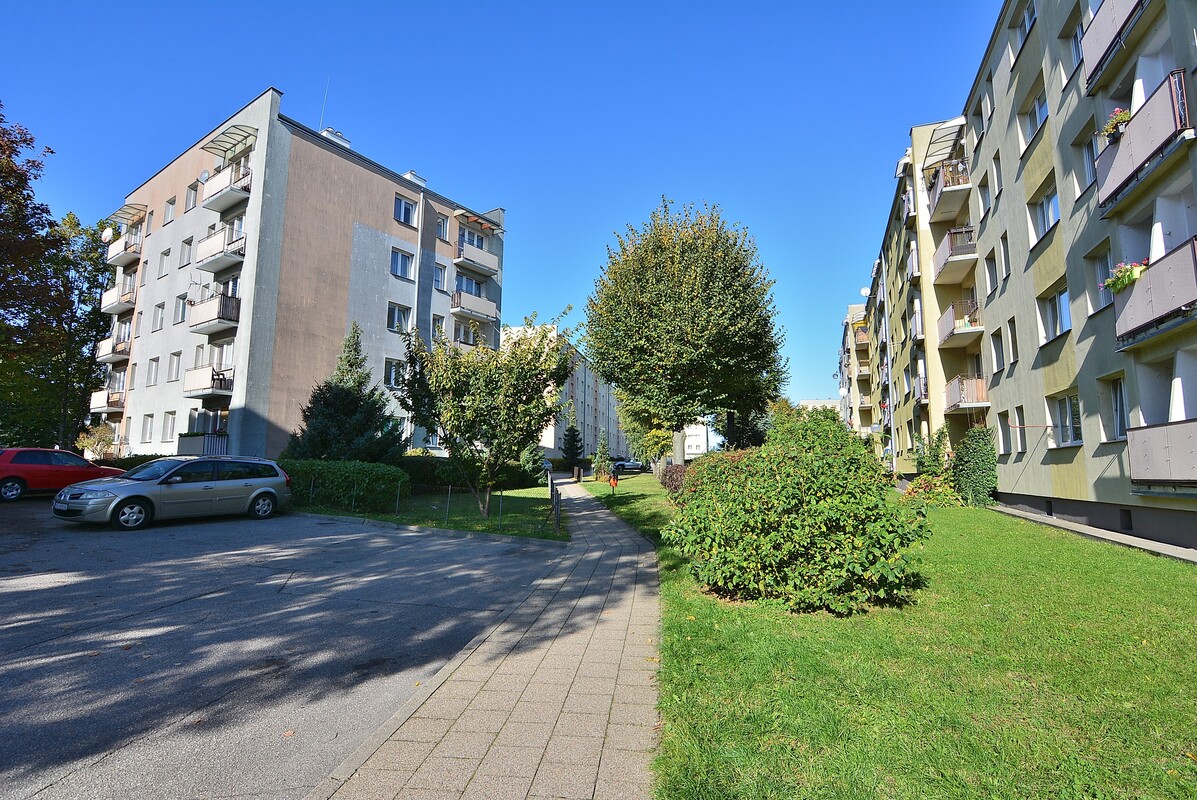 Czteropiętrowy blok w stanie dobrym, otoczony zielenią. Przed budynkiem liczne miejsca postojowe wzdłuż osiedlowej ulicy, za budynkiem ogólnodostępny parking. Teren wokół budynku utrzymany jest w nienagannej czystości, co daje mieszkańcom poczucie estetyki i komfortu. Wejście do budynku zabezpieczone domofonem.