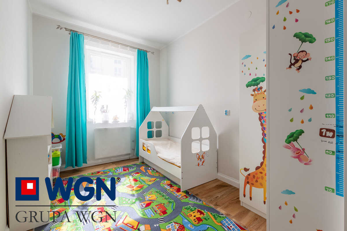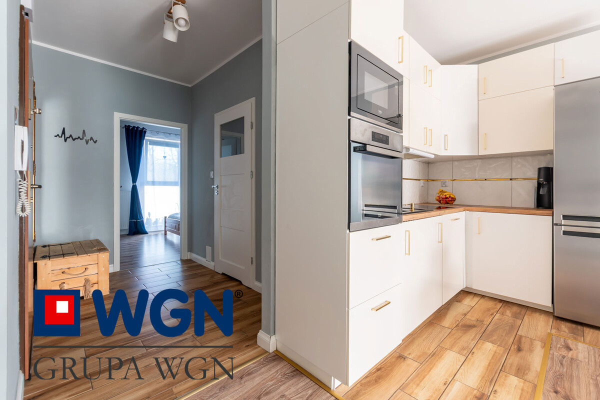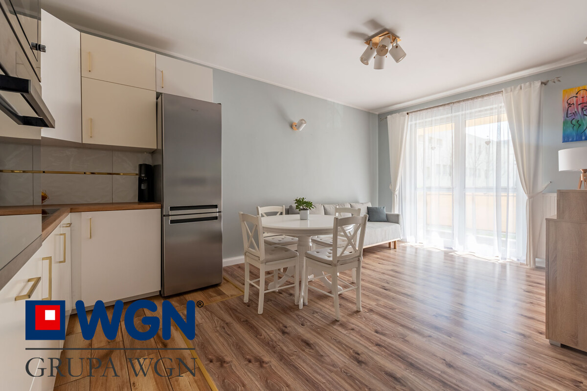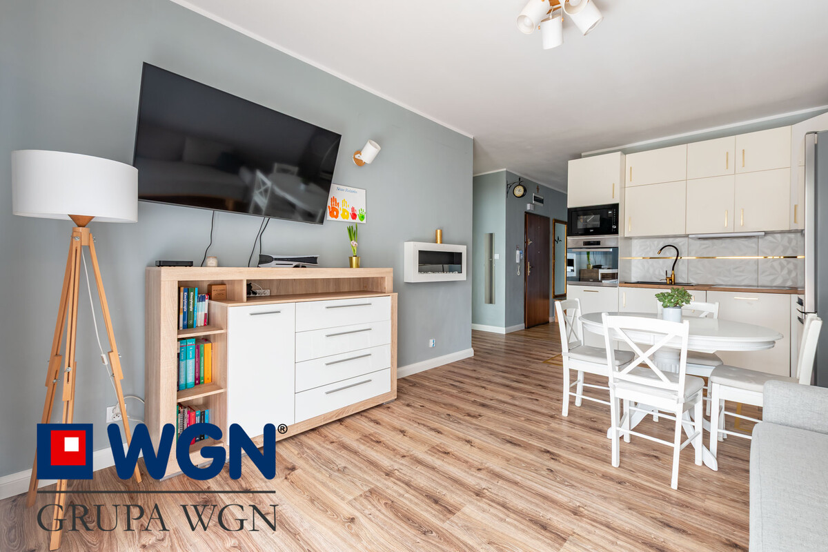 Salon z aneksem kuchennym i wyjściem na przestronny duży balkon. Aneks kuchenny z indukcją (mieszkanie bez gazu) posiada wszystkie sprzęty AGD. Pokoje obecnie pełnią funkcję sypialni i pokoju dziecięcego. W sypialni znajduję się pojemna szafa, która zostaje dla nowego właściciela. Na przedpokoju, za przesuwnymi drzwiami znajduję się mała, lecz pojemna garderoba. Łazienka w nowoczesnym stylu z zamontowanym prysznicem. W łazience rozprowadzenie ogrzewanie podłogowe. Wszystkie media doprowadzone z miasta. Do mieszkania przynależy piwnica o powierzchni ok 3,86 m2 oraz miejsce w hali garażowej dodatkowo płatne do obowiązkowego wykupu ( kwota 40 000 zł).