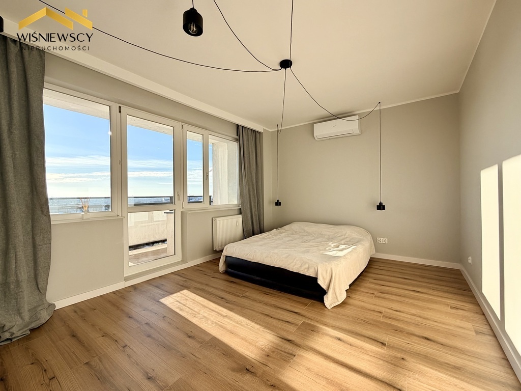 W sypialni zamontowano klimatyzację grzewczo-chłodzącą, która poprawia komfort zarówno latem, jak i w chłodniejszych miesiącach.