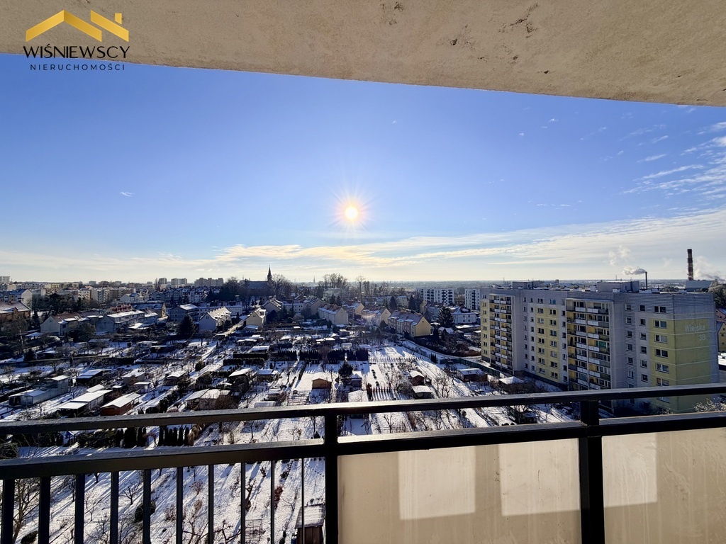Mieszkanie jest jasne, zadbane i spójnie wykończone, a duży balkon stanowi idealne miejsce do odpoczynku z widokiem na miasto.