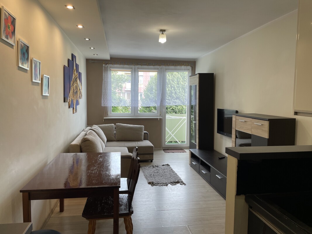 Mieszkanie składa się z salonu, sypialni, kuchni oraz łazienki i jest w pełni umeblowane - gotowe do zamieszkania. Kuchnia cała w nowoczesnej zabudowie. Materiały budowlane również wysokiej jakości, między innymi farby firmy Dekoral, Magnat. W całym mieszkaniu oświetlenie typu LED. Do wykorzystania piwnica.
