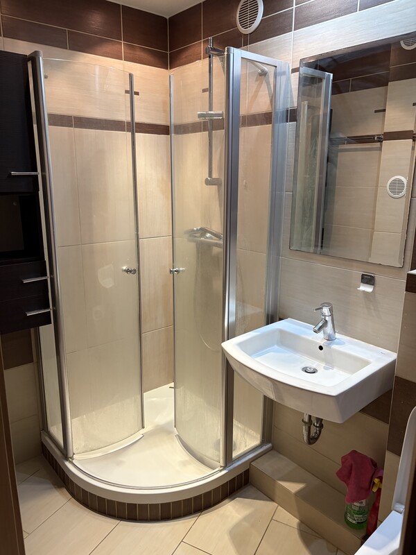 * Łazienka z kabiną prysznicową.