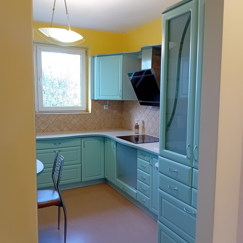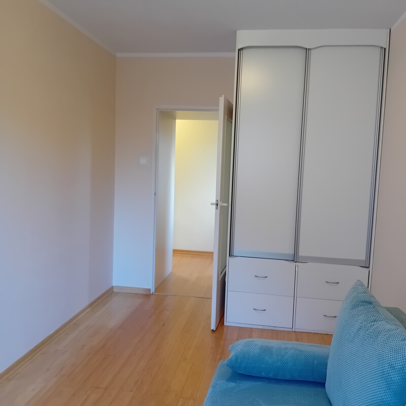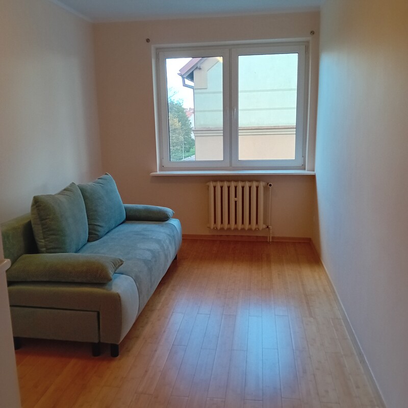 - Mniejszy pokój: zabudowana szafa oraz nowa sofa z funkcją spania