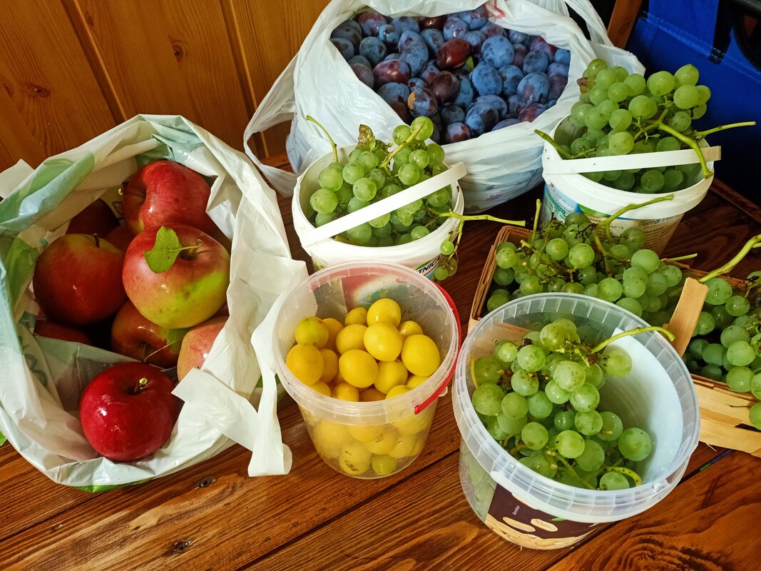 - Krzewy owocowe: borówki amerykańskie, jagoda kamczacka, winogrona, jeżyny