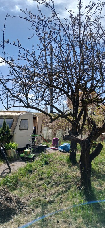 Działka ROD ul. Grunwaldzka 400m2 Prąd/woda/wędzarnia/przyczepa kempingowa