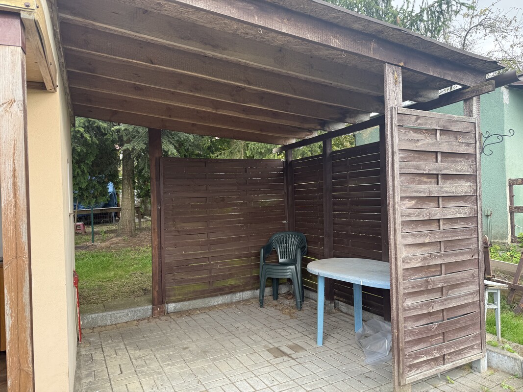 Na działce prąd, woda, toaleta. Altanka murowana z tarasem wyłożonym kostką brukową. Z tyłu znajduje się schowek na narzędzia. Działka bez nasadzeń - do własnej aranżacji z dużym potencjałem. Działka narożna, słoneczna.