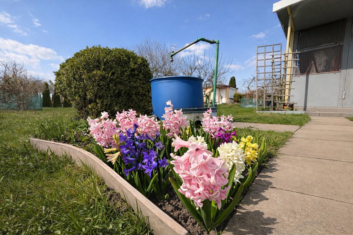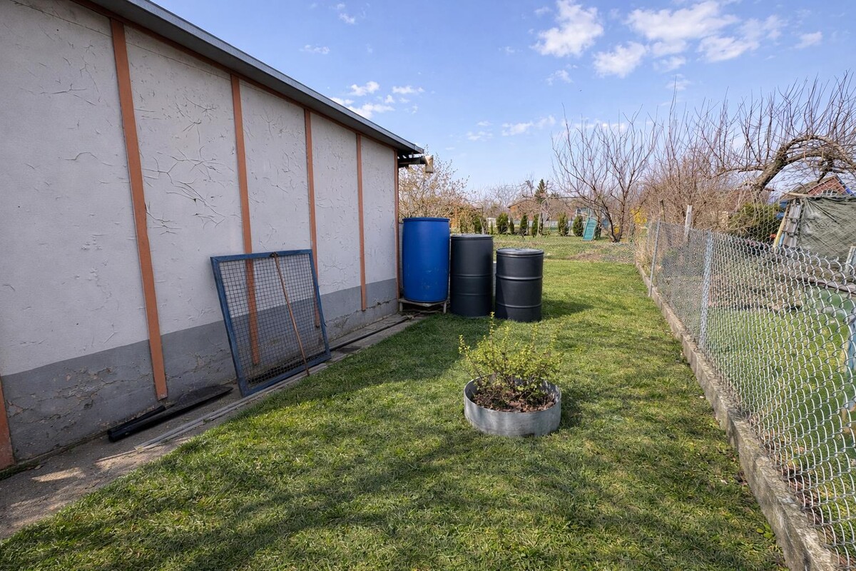 Działka wyposażona jest w prąd oraz wodę z sieci miejskiej. Dodatkowo do podlewania roślin przygotowano beczki na wodę deszczową. Całe wyposażenie oraz narzędzia pozostają na działce i są wliczone w cenę.