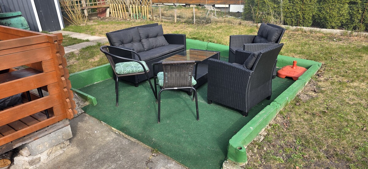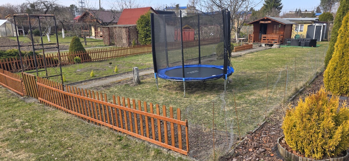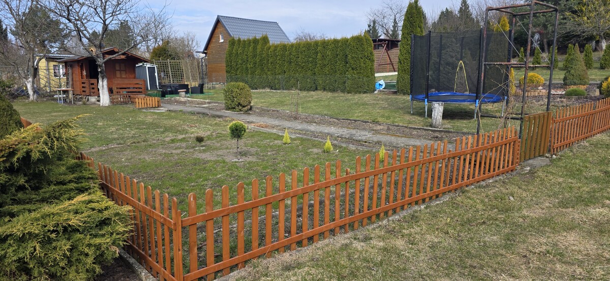 Na działce znajduję Woda pitna i Prąd Toaleta obok działki trzy letnia Altanka z tarasem Narzędziówka nowy Komplet mebli ratanowych Duży rozkładany stół Cały komplet narzędzi ogrodowych Grill na kółkach z termometrem Nowy jeszcze nie rozpakowany Pawilon ogrodowy 3x3x3 Kosiarka i Podkaszarka elektryczna Jacuzzi na 4 osoby Nowa kuchenka gazowa Zlew z blatem i kranem Dwie czereśnie Trampolina.