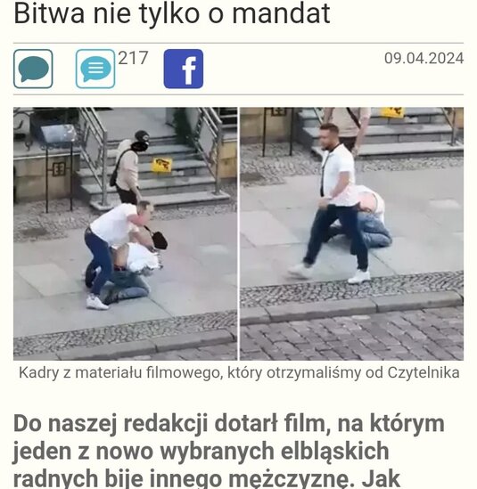 Do zdarzenia doszło we wtorek przed godz. 11. Na filmie widać, jak młody mężczyzna szarpie się z dwójką elbląskich strażników miejskich, którzy nie mogą sobie z nim poradzić. Mężczyzna w którymś momencie kopie leżącego na ziemi strażnika, po czym ucieka.