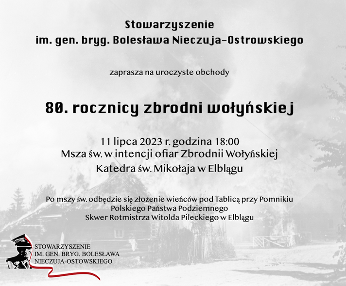 W Elblągu we wtorek, 11 lipca, odbędą się obchody 80. rocznicy zbrodni wołyńskiej. Organizuje je Stowarzyszenie im. gen. bryg. Bolesława Nieczuja-Ostrowskiego.