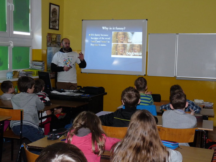 Swoją obecność na obchodach Dnia Talentów zaznaczył także Roger Messer z jednej z elbląskich szkół językowych. Poprowadził on zajęcia, na których uczniowie mogli sprawdzić swoje umiejętności językowe i obejrzeć prezentację multimedialną poświęconą krajom anglojęzycznym.