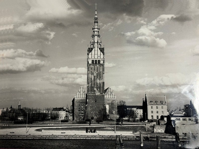 Najwyższa po wschodniej stronie Wisły wieża wówczas jeszcze kościoła pw. św. Mikołaja (dziś to katedra), a wokół... łąka. Ciekawostka: nie ma Mostu Wysokiego, z wody wystają tylko pale. Przyczółek na brzegu zdradza, że tędy można było dostać się na drugi brzeg. Zdjęcie z lat 60. przypomina, dlaczego przez długi czas nasze miasto żartobliwie i złośliwie było nazywane siedmioma wsiami, połączonymi tramwajem. Dziś z tego miejsca nie zobaczymy budynków, które na fotografii znajdują się na drugim planie. Na miejscu łąki, dookoła kościoła. znajduje się „Nówka – Starówka” - chyba najnowsze Stare Miasto w Polsce, którego odbudowa rozpoczęła się w latach 80. (fot. H. Myśliński)
