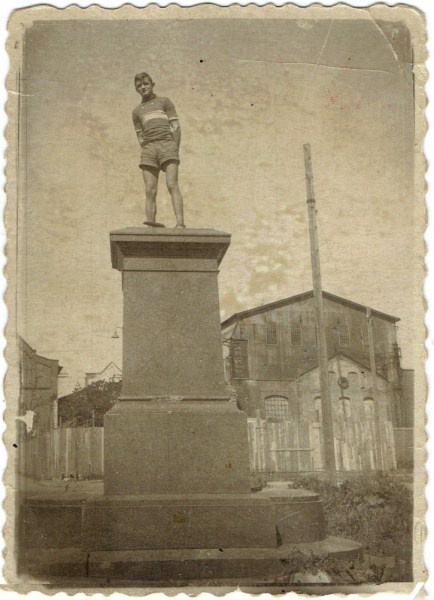 - Rok 1949. W czasie szkolnej przerwy wyskoczyliśmy na szkolny dziedziniec. Mój kolega Marian Dacewicz, z naszą pomocą, wdrapał się na postument po pomniku Ferdynanda Schichaua. Wtedy zrobiłem to zdjęcie. Wróciło do mnie 25 lat temu, Marian oddał mi je na pamiątkę naszej znajomości. Wykonane jest na kliszy rentgenowskiej. Nie pamiętam, skąd miałem kliszę, skąd miałem aparat i w jaki sposób wiedziałem, jak wywołać to zdjęcie. Może w szkole było kółko fotograficzne... Nie pamiętam... – wspomina Elblążanin. - Aparat był taki zwykły, prosty. Skrzynka taka kwadratowa. (fot. Henryk Myśliński)