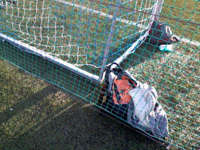 • dla Pani która ogląda Orlik z okna, słaba jakość ale ewidentnie widać butlę piwa, z której popijał sobie bramkarz