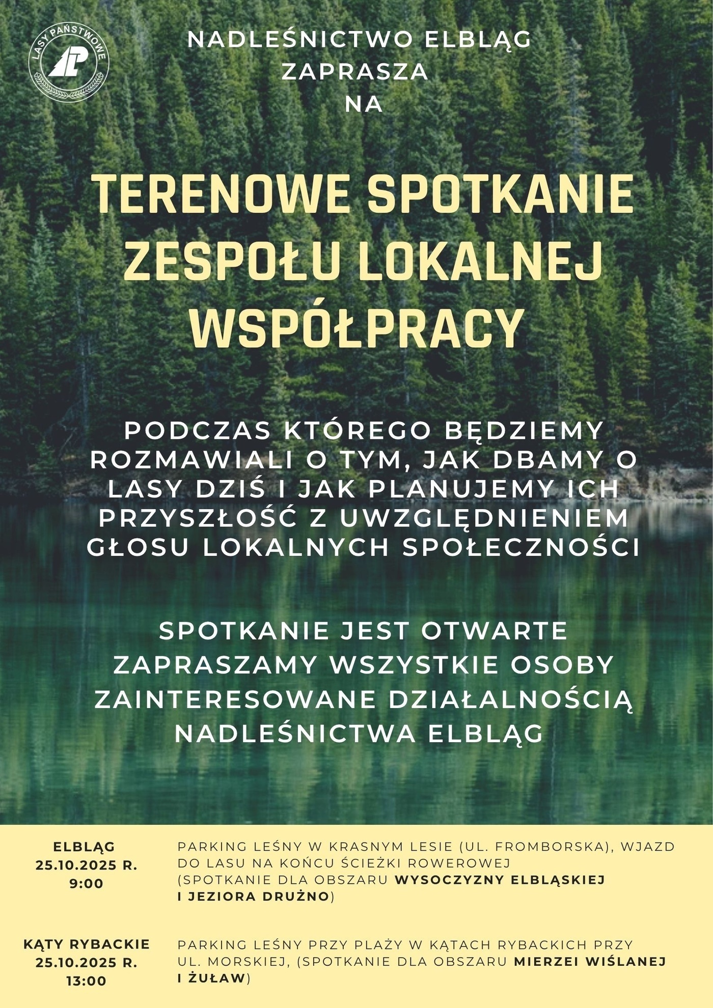 Ze względu na bardzo obszerny teren, na którym znajdują się lasy Nadleśnictwa Elbląg zaplanowane zostały dwa spotkania, w różnych miejscach lecz o tej samej tematyce.
