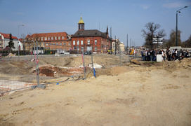 - Tu była jezdnia – wyjaśniała Grażyna Nawrolska, ale zaraz cofnęła się dalej do historii Elbląga. - W końcu XVIII wieku, w roku 1777, piorun uderzył w wieżę kościoła św. Mikołaja i pożar przerzucił się na znajdujący się naprzeciwko ratusz. Ratusz się spalił. W związku z tym, że miasto było otoczone fortyfikacjami i zaczęło się robić ciasno, pomyślano, że nadarza się okazja, by je powiększyć i przenieść centrum. Postanowiono wyburzyć wszystkie obronne elementy wokół i otworzyć miasto na zewnątrz. Zaczęto rozbierać fortyfikacje, które obiegały i Stare, i Nowe Miasto, a także Wyspę Spichrzów i rozbudowywać Elbląg w kierunku wschodnim. Ratusz wybudowano tutaj [Pl. Słowiański – red.], ale w 1945 r. został on spalony i – niestety - rozebrany. A tu do czasów II wojny światowej było centrum - wskazywała. - Teren Pl. Słowiańskiego nie był zabudowany więc jak rozebrali fortyfikacje to fundamenty zasypali ziemią i zrobili tu plac targowy.