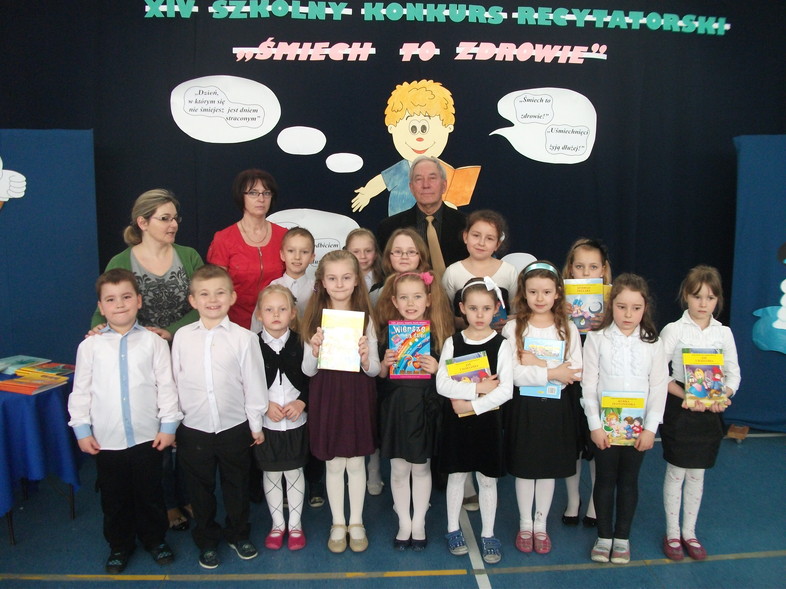 Autor wysłuchał wierszy prezentowanych przez młodych recytatorów oraz przedstawił swoje nowe książki dla dzieci p.t.: „Trzy zegary” oraz „Skarby starego domu”. Dla uczniów było to nie lada wydarzenie, gdyż część ilustracji opublikowanych w tych książkach wykonały właśnie nasze dzieci. Natalia Guss z kl. III, Oliwia Denka z kl. III oraz Dawid Zabuski z kl. II w zamian za piękne rysunki otrzymali egzemplarze opowiadań. W przerwie młodzi artyści zadawali poecie wiele pytań dotyczących jego twórczości, jak również życia osobistego. Dzieci wykazały się również chęcią posiadania tomików opowiadań i wierszy z autografem pisarza.