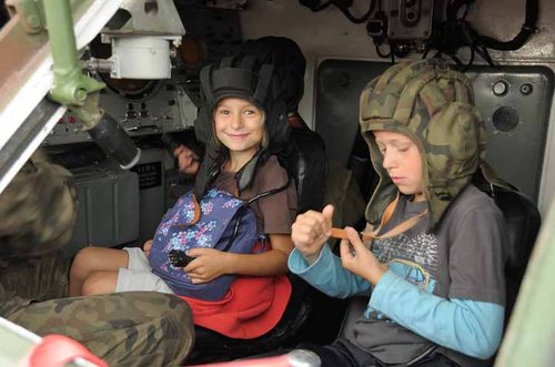 Na placu na terenie jednostki goście mogli zobaczyć, dotknąć i nawet wsiąść do wojskowych pojazdów. Śmiałków nie brakowało. Głównie chłopcy (choć i dziewczynki przejawiały zainteresowanie sprzętem militarnym) dumnie prezentowali się w hibnerycie czy w stacji SSWN (Samobieżna Stacja Wykrywania i Naprowadzania).