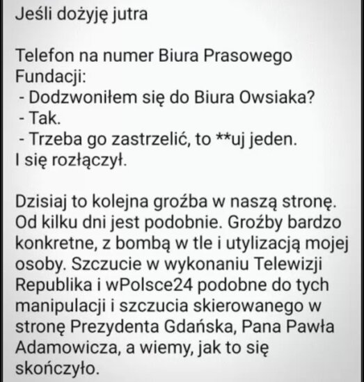 • Wyobraźcie sobie, że w porcie w Gdyni wysiada Szwed i Norweg. Idą z plaży w kierunku centrum. Widzą te nowoczesne apartamenty i pięciogwiazdkowe hotele. Widzą drogie restauracje i luksusowe auta. Widzą ludzi w kurtkach Moncler za solidne kilka koła, na smyczy z pieskiem z hodowli, który kosztował 10 000 zł. Myślą sobie: ale Polska się rozwija, ale oni się bogacą, to już nie są lata dziewięćdziesiąte. I na koniec podchodzi do nich dziecko z puszką i mówi, żeby się dołożyli, bo w Polsce chore dzieci umierają na korytarzach szpitali, bo nie ma pieniędzy na ich ratowanie. Potem taki Szwed i Norweg patrzą jeszcze raz na wszystko co ich otacza, podliczają jeszcze raz ile to wszystko musiało kosztować i pukają się w głowę, widząc jak Polacy gospodarzą we własnym kraju. Na deweloperkę, hotele, restauracje, drogie ciuchy, szybkie auta i tatuaże Polak wyda miliony, ale na ratowanie życia ich własnych dzieci już nie starczyło. No cóż... mówi się trudno i dalej bezrefleksyjnie wrzuca do puszki...