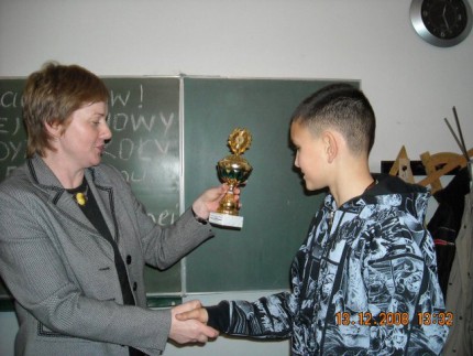 Zwycięscy otrzymali z rąk Pani Ewy Iwanowicz, dyrektora szkoły puchar, a wszyscy uczestnicy pamiątkowe dyplomy oraz upominki.