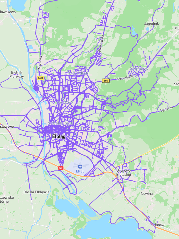 – Usłyszałem kiedyś w radiu o facecie, który przeszedł pieszo wszystkie ulice Krakowa i to udokumentował w aplikacji. Tak mi się to spodobało, że postanowiłem podobne wyzwanie zrealizować biegiem. Zacząłem od swojego rodzinnego Świdwina, potem byłem w delegacji w Nysie, ale trwała ona za krótko, bym dokończył tam wyzwanie. Od roku jestem w Elblągu, niedługo po przyjeździe i znalezieniu mieszkania rozpocząłem realizację swojego celu. Do jego udokumentowania używałem aplikacji City Strides, która bazuje na danych z OpenStreetMap. Projekt robiłem raczej jako urozmaicenie treningów, żeby nie znudzić się na długich wybieganiach. Ulice przebiegałem w całej ich długości, chyba że uniemożliwiały to zakaz ruchu pieszych bądź tereny prywatne. Latem dodatkowo przebiegłem wszystkie uliczki Gronowa Górnego w gminie Elbląg – mówi biegacz.