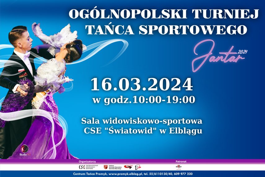 Zawody rozpoczną się w sobotę, 16 marca o godz. 10:00. Realizowane będą w podziale na trzy bloki. Ostatni blok, w którym zaprezentują się najbardziej doświadczeni zawodnicy, wystartuje o godz. 17:00. Ogólnopolski Turniej Tańca Sportowego „Jantar” odbędzie się w sali widowiskowo-sportowej w CSE „Światowid” w Elblągu przy pl. K. Jagiellończyka 1.