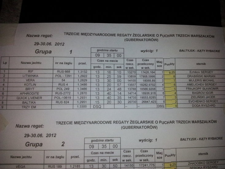 1. Berbeć 2 (Polska, Elbląg) – sternik: Ryszard Seroka (załoga: Przemysław Kowalski, Krystyna Seroka, Tomasz Urbaniak)
