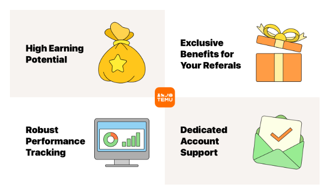- Łatwy start i brak kosztów Program parterski TEMU jest całkowicie bezpłatny – nie ma żadnych kosztów początkowych. Dzięki minimalnym wymaganiom dołączenia, praktycznie każdy – od osób indywidualnych po duże wydawnictwa – może wziąć udział. TEMU udostępnia także gotowe materiały promocyjne, takie jak teksty i grafiki, więc możesz zacząć zarabiać niemal od razu.