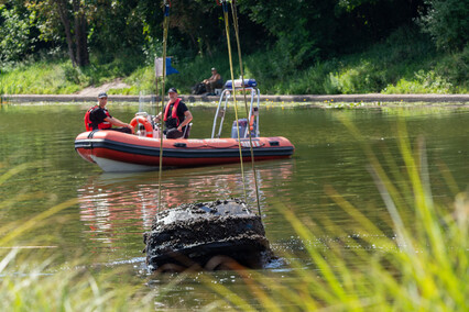 Przeprowadzili ją płetwonurkowie Ochotniczej Straży Pożarnej Ratownictwo Wodne w Elblągu. - Teren, na którym znajduje się pierwszy pojazd, mamy już oznakowany bojami. Rozstawiliśmy też z nurtem zaporę z rękawa. To ma zapobiec wyciekowi z wraków do rzeki płynów eksploatacyjnych: benzyny, ropy, olej silnikowy. Wiemy, że samochody są zanurzone w mule. Wprowadzimy dwóch płetwonurków, będą oni zabezpieczani z łódki. Ich zadanie to podczepić pojazdy liną do dźwigu – wyjaśniał nam chwilę przed rozpoczęciem akcji Jacek Songin, naczelnik Ochotniczej Staży Pożarnej Ratownictwo Wodne w Elblągu.
