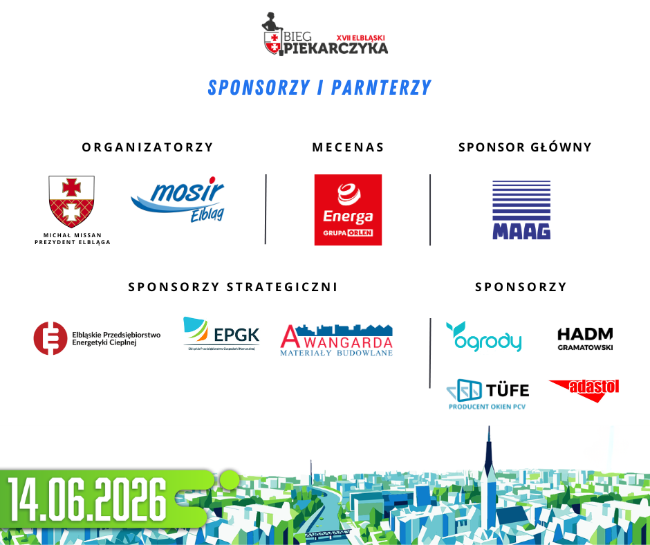 Bieg Piekarczyka, którego organizatorami są Prezydent Elbląga Michał Missan oraz Miejski Ośrodek Sportu i Rekreacji, to jedno z najważniejszych wydarzeń sportowych w Elblągu i regionie. Każdego roku przyciąga tysiące biegaczy oraz kibiców, stając się czymś więcej niż tylko rywalizacją – to święto aktywności, energii i lokalnej wspólnoty.