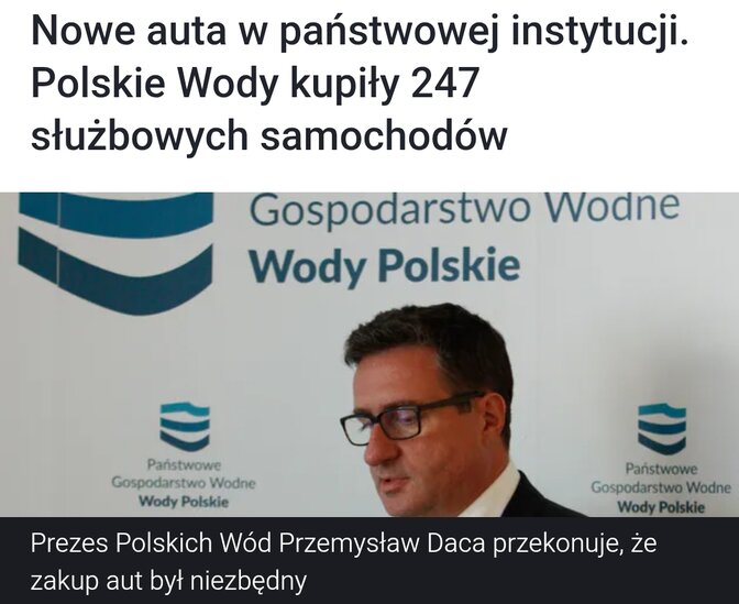 • @Idealna synekura - " "Historia "Wód Polskich" jest stosunkowo krótka, gdyż jako Państwowe Gospodarstwo Wodne Wody Polskie (PGW WP) zostały utworzone 1 stycznia 2018 roku ". Pisowska instytucja do drenowania polskiego budżetu