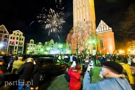 Wcześniej publiczność bawiła się na zabawie prowadzonej przez Łukasza Geska. Im bliżej północy, tym coraz więcej mieszkańców Elbląga przybywało na plac katedralny. O północy rozpoczął się pokaz animacji laserowej. Fajerwerków tez nie zabrakło, o co postarali się mieszkańcy.