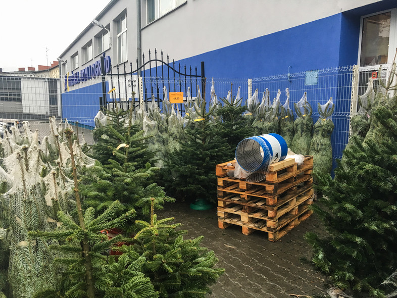 Nie aż tak bardzo. Kupujemy akurat w tej Mrówce, bo mamy duży wybór ozdób świątecznych, a ich ceny są wręcz promocyjne w stosunku do jakości. Przed kilkoma minutami telefonowałem do sąsiada i poleciłem mu zakup żywej choinki, ponieważ cena tutaj jest prawie o połowę niższa niż w innych miejscach Elbląga. Przy czym ta jodła nie wygląda jak jakaś drapaka. Wręcz przeciwnie, ma piękne gęste gałęzie i igliwie. Ponadto od dzisiaj mają 20 proc. rabatu na ozdoby i zabawki, więc korzystam z takiej okazji.