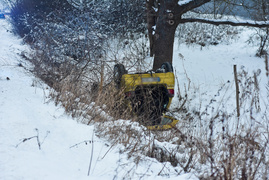 Do pierwszego zdarzenia doszło około godz. 15 w Nowinie. Jak dowiedzieliśmy się od pracujących na miejscu zdarzenia policjantów, kierowca toyoty jadąc w kierunku Gronowa Górnego, stracił panowanie nad pojazdem i wpadł do rowu, gdzie auto dachowało. Świadkowie zdarzenia wezwali policję. Osoba kierująca toyotą oddaliła się z miejsca zdarzenia, nie czekając na przyjazd służb ratowniczych. Policjanci ustalają tożsamość kierowcy toyoty.