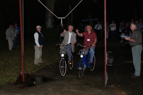 Turniej sportowy Fahrradringreiten. Na rowerach Hans Friedrich Tiemann, przewodniczący Rady Powiatu Steinburg i Ryszard Zając, członek Zarządu Powiatu w Elblągu.
