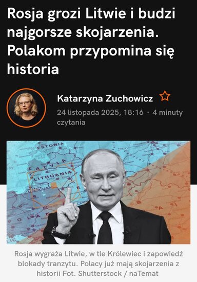 • Tak apropos wiedzy. - Zablokowanie któregokolwiek z podmiotów Federacji Rosyjskiej równoznaczne jest z wypowiedzeniem wojny - zagroził Andriej Kolesnik. Przypomniał też, że obwód kaliningradzki otoczony jest przez państwa NATO, co w razie eskalacji może prowadzić do szerokiego konfliktu.