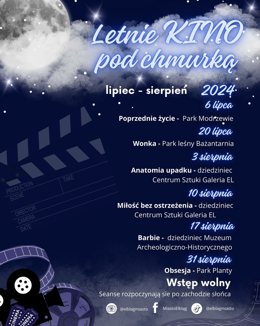Filmy, które będą wyświetlane w ramach cyklu "Letnie kino pod chmurką" wybrali Internauci spośród 20 propozycji na portalu społecznościowym Miasto Elbląg.