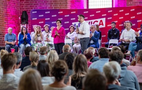 - Wierzymy też w to, że nie ma bezpiecznej Polski bez bezpieczeństwa kobiet – mówiła posłanka Magdalena Biejat, nawiązując do ostatnich głośnych przypadków śmierci kobiet w ciąży czy działań policji wobec kobiet w ciąży. - Jedną z pierwszych rzeczy, którą zrobimy zaraz po wygranych wyborach, będzie zmiana prawa, doprowadzenie do tego, że będziecie bezpieczne, że nie będziecie musiały się martwić, że jakiś nadgorliwy policjant, nadgorliwy lekarz, albo przemocowy partner będzie donosił na was na policję, tylko dlatego, że przerwałyście własną ciążę, bo chciałyście podjąć decyzję, która dla was jest dobra – mówiła posłanka.