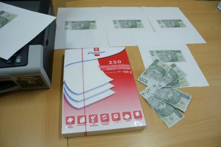 17 listopada kierownik jednego z elbląskich sklepów powiadomił policję, że placówce kasjerka przyjęła cztery podejrzanie wyglądające banknoty. Policjanci zabezpieczyli fałszywki. Wszystkie miały identyczny numer i serię. Funkcjonariusze wytypowali sprawców tego procederu. Już dwa dni później wszyscy zostali zatrzymani. Okazało się, że to: 27-letni Cyprian R., 25-letnia Agnieszka O., 17-lestni Paweł C., i trzech 18-latków Adam O. Krystian S. i Daniel O. Policjanci w trakcie przeszukania w mieszkaniu jednego ze sprawców zabezpieczyli komputer i urządzenie wielofunkcyjne, na których, na podstawie oryginalnego banknotu, produkowano fałszywki.
